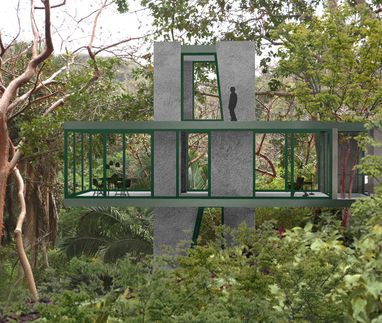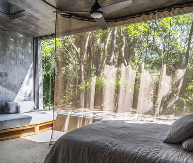 Esta casa sólida y transparente a la vez enmarca vistas hacia la naturaleza y al mismo tiempo su solidez te acurruca en la inmensidad de la selva.