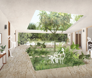 A primera vista es una casa sencilla, pero contiene un encanto particular. El corazón de la casa enmarca el cielo como un cenote, donde la naturaleza convive con la calma.