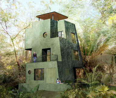 La sencillez de los materiales exteriores evocan a una casa maya, el interior sorprende por su calidez y comodidad. Sus techos altos y en forma de pirámide, le otorgan identidad a la casa. A partir de la arquitectura local, esta casa utiliza unos techos característicos de palapa construidos con madera y crece con espacios alargados conteniendo un patio central con la alberca y las vistas principales al jardín.